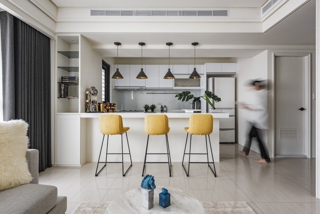 為呈現基地採光優點,保留原本三房格局外,客餐廳區無隔間牆,光線可以浸入整個空間,豐富了這個...